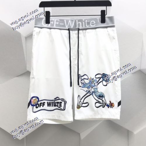 首胸ロゴ 2021春夏ショートパンツ ストレッチパンツウエストドローコード フロントマークプリント Off-White オフホワイトブランド コピー